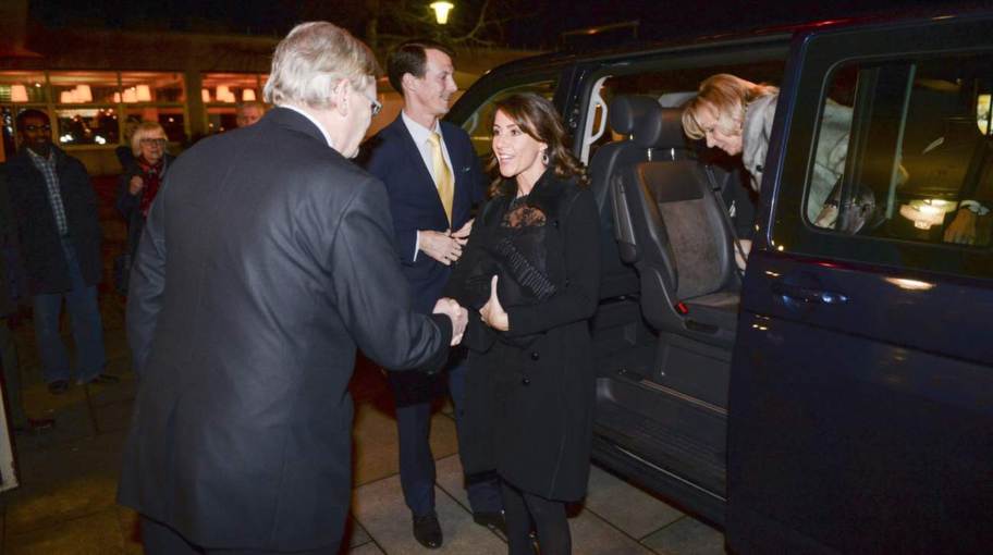 Avant le spectacle à l'Opéra de Malmö, le prince Henrik et la princesse Marie sont accueillis par le Directeur du théâtre, Bengt Hall et le Président de l'Opéra, Douglas Roth